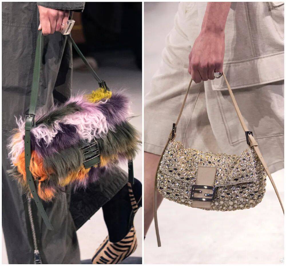 本季另一重要关注点在于“包袋”。作为曾参与开发 Fendi 经典 Baguette 手袋的设计师,Maria Grazia Chiuri 在本季秀场上通过亮片、皮草、流苏、皮革等不同元素,重新诠释了这款标志性产品。