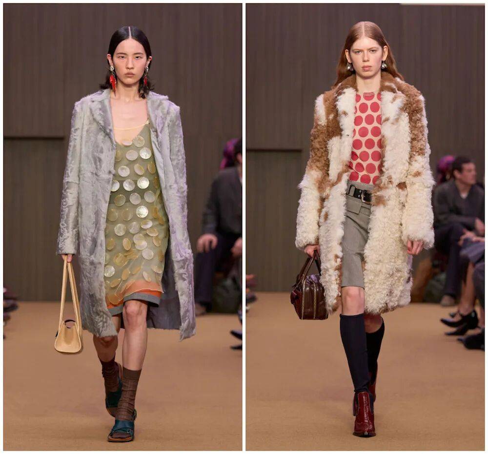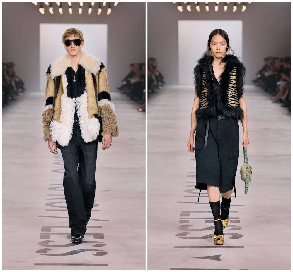“皮草”一直是 Fendi 的重要基因,本季也呈现了多款造型各异的皮草外套,或将皮草作为修饰点缀于衣领、鞋履、包袋等单品细节之中。
